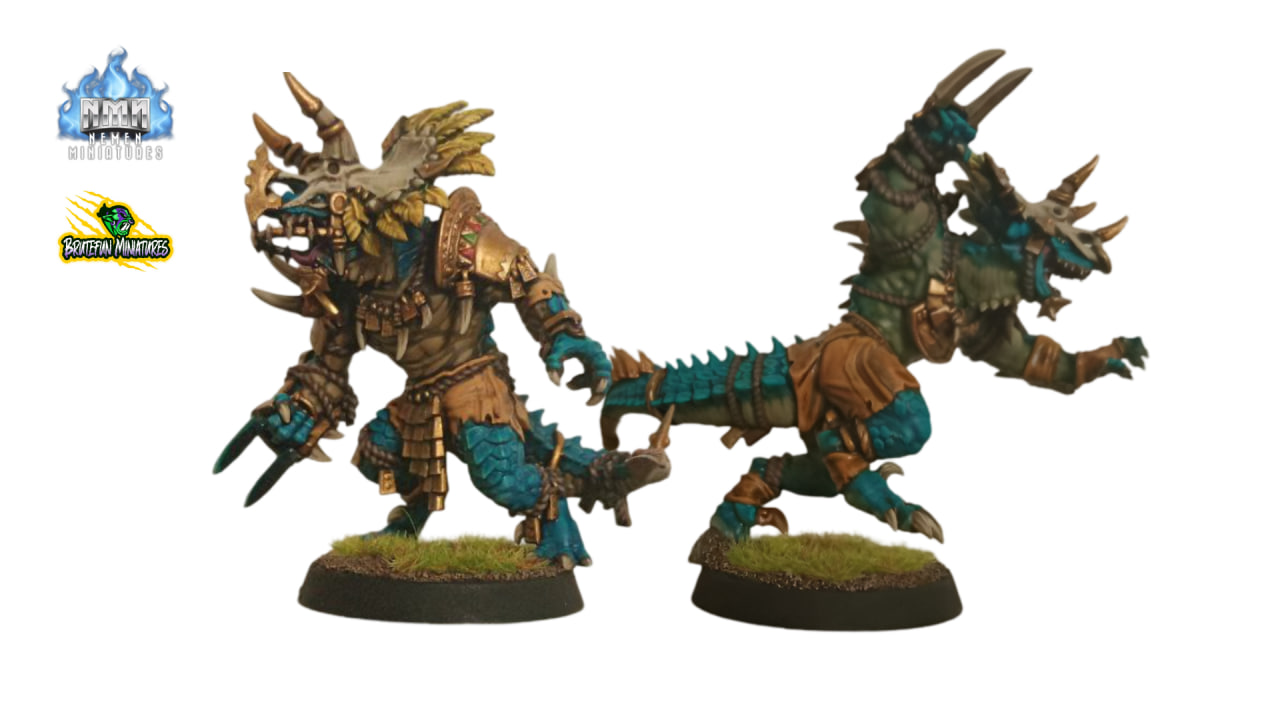Lizard Twins. 1x Guard StarPlayer Lizard, 1x Frenzy StarPlayer Lizard. Normal size miniatures from Brutefun Miniatures Lizardmen Team.